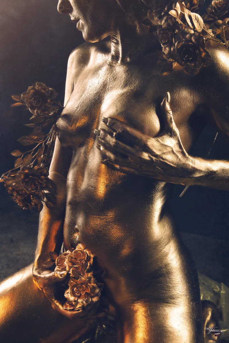 When the body becomes a living sculpture: an alchemy between oil and gold.