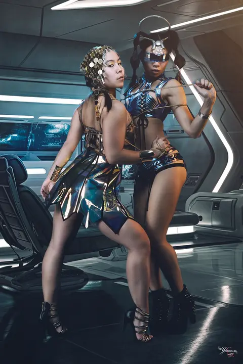 C'est une esthétique 'Technopoétique'. Loin des clichés rétro, la photographie de nu trouve ici une nouvelle expression : épurée, graphique, presque architecturale. On y croise des inspirations dignes du Cinquième Élément, des textures brillantes et des poses affirmées.